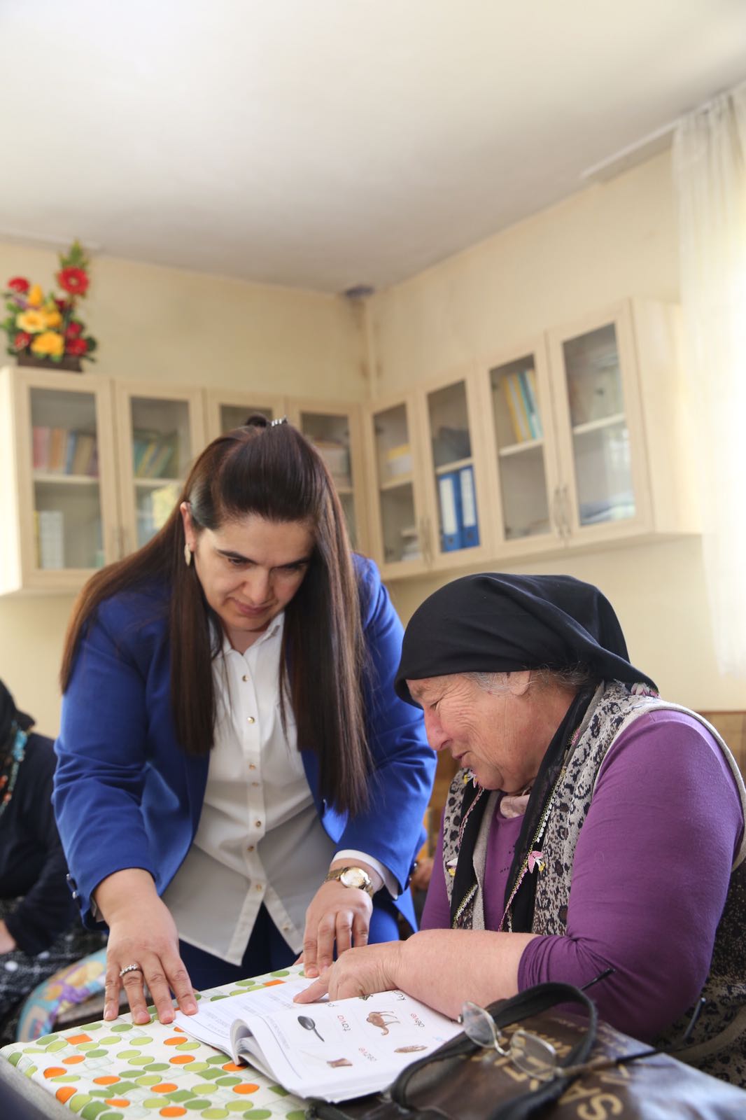 Selda Yavuz, Şehit Yıldıray Uygun İlkokulu’ndaki programının ardından İlçenin Akköy Çayır mahallesinde okuma yazma kursuna katılan kursiyerleri ziyaret etti.