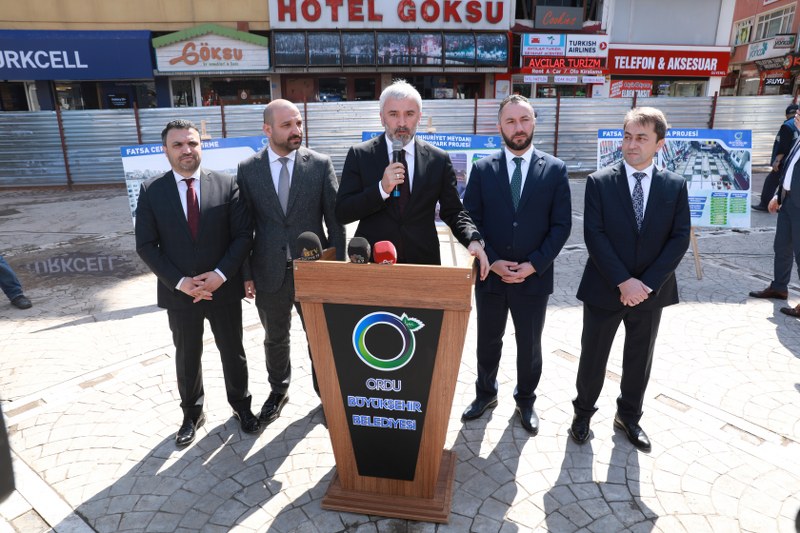 Cumhuriyet Meydanı’nda bir konuşma yapan Ordu Büyükşehir Belediye Başkanı Enver Yılmaz, “Meydan projemizde 5 adet binaya yaklaşık 15 milyon TL’yi bulan kamulaştırma bedeli ödedik. Fatsa Belediyemizle uyumlu bir şekilde yer altı otopark projesi, çevre düzenlemesi ve projenin karşıda ki Atatürk Parkı ile refüj projesinin ihalesini gerçekleştirdik. Müteahhit firma başladı. Bugün itibarıyla hızlı bir şekilde bu projenin hayata geçmesi için elimizden gelen gayreti göstereceğiz. 10,5 milyonu buluyor bu projemiz. Kamulaştırma ve yapım işi için bu meydana Büyükşehir Belediyesi olarak 25 milyona yakın bir meblağı harcamış olduk. Fatsa ilçemizin bu meydanı kazanması ile birlikte Ordu ilimizin en güzel meydanlardan birisi olacaktır. Proje bitim tarihi yıl sonu olarak gözükse de yaz ayanın sonunda müteahhit firmanın bitireceğini söylediler. Eylül ayı sonu itibarıyla meydan projemiz inşallah hayata geçmiş olacak. Meydanda yıkılmayan mevcut bina ile ilgili yasal süreçle ilgili bir süre vardı, onu bekledik. Bu yüzden biraz bu süre uzadı. Yıkılmayan binanın hukuki sorunu kalmadı.Yasal açıdan verilmesi gereken bir süre var. Onu da biz verdik. Zaten elektrik ve su ve kiralama işlemleri iptal edilmiş. Bizim teklifimiz şu idi burada 5 tane binaya ne verdiysek yasal açıdan ona da aynısını vereceğiz.” dedi.