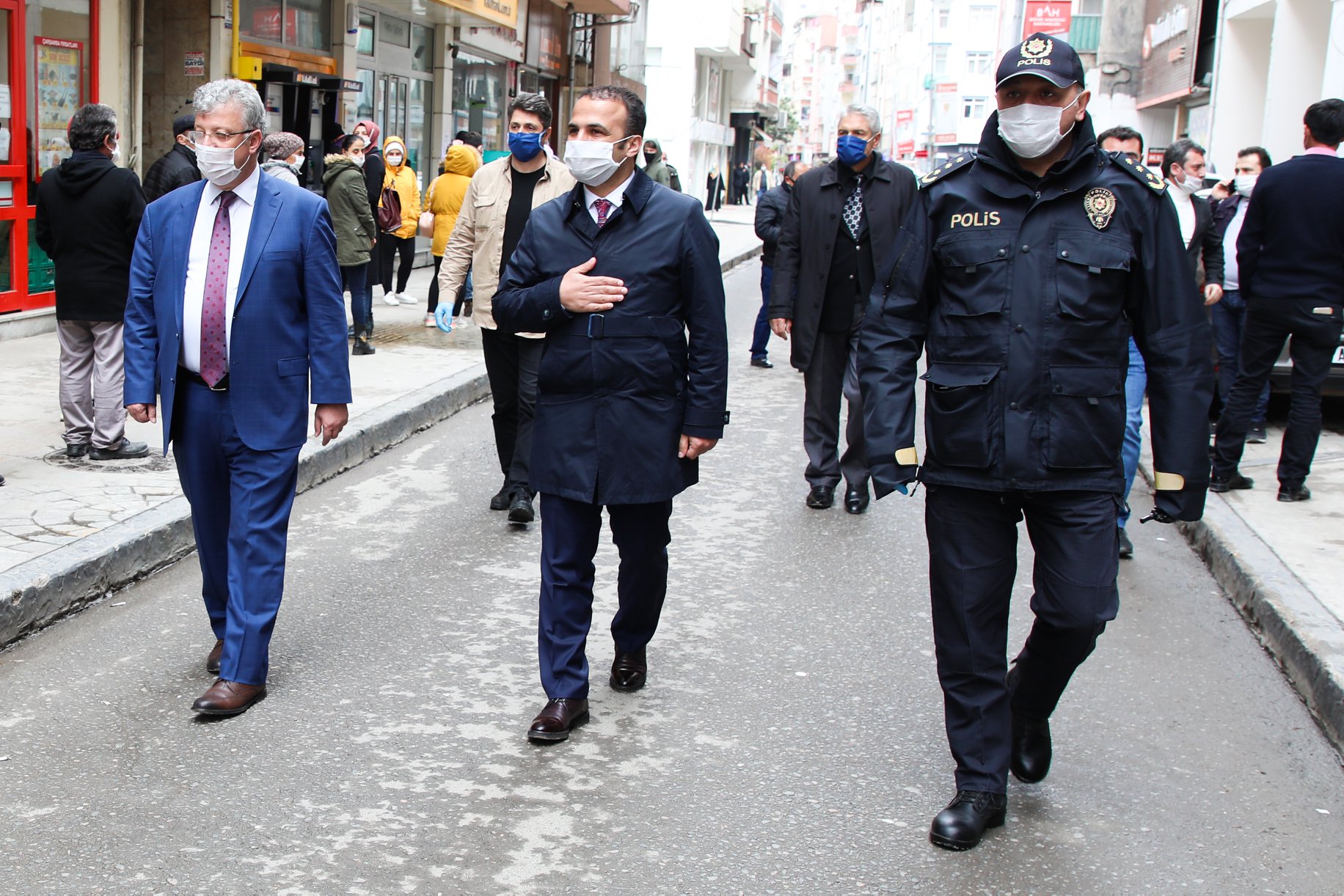 Fatsa Belediye Başkanı İbrahim Etem Kibar, İlçe Kaymakamı Ömer Lütfi Yaran ve İlçe Emniyet Müdürü Tolga Sipahi ile birlikte Kurtuluş Mahallesindeki Perşembe Pazarına ve Reşadiye Caddesindeki esnaflara ziyaret ederek hem esnaflarla hem de vatandaşlarla sohbet etme imkanı buldular. Fatsa Belediye Başkanı İbrahim Etem Kibar, İlçe Kaymakamı Ömer Lütfi Yaran ve İlçe Emniyet Müdürü Tolga Sipahi Başkan Kibar, pazarın giriş noktalarında uygulanan sosyal mesafe kuralı ve maske dağıtımını kontrol etti. Başkan Kibar ve Kaymakam Yaran zabıta ekiplerinden sık sık pazar alanını gezerek, maskesiz satış yapılmaması ve vatandaşların maskesiz içeriye girişlerine izin verilmemesi noktasında duyarlı olmalarını istedi. Başkan Kibar ve Kaymakam Yaran pazar esnafına hayırlı işler dilerken, vatandaşlarla sosyal mesafe kuralına uyarak sohbet etti. “KURALLARA UYARAK HEM KENDİMİZİ HEM DE ÇEVREMİZİ KORUMUŞ OLURUZ” Fatsa Belediye Başkanı İbrahim Etem Kibar Perşembe Pazarı ve Reşadiye Caddesinde gerçekleştirdikleri ziyaretle ilgili yaptığı açıklamada, “Covid-19 tüm Dünya için büyük bir tehdit. Sabrederek, devletimizin koyduğu kurallara uyarak, alınan tedbirlere güvenerek, en önemlisi kendimizi sakınarak ve gelecek güzel günlere inancımızı bir an olsun yitirmeyerek selamete ereceğiz. Pazar yerlerindeki girişlerin kontrol altına alınması ve içerideki esnaf sayısının belli bir oranında, içeride müşteri bulunması noktasında düzenleme var. Bu çalışmaların uygulanıp uygulanmadığını kontrol ettik. Hem esnafımız hem de vatandaşımız kurallara riayet ediyor. Halkımızın kurallara uymasından memnuniyet duyuyoruz. Pazar alanının etrafını bariyerlerle çevirdik. Giriş ve çıkışlar belli noktadan oluyor. Girişlerde maskesi olmayan vatandaşlara maske dağıtıyoruz. Hijyen kurallarına uyarsak ve temastan uzak durursak, bu hastalık konusunda hem kendimizi hem de çevremizi korumuş oluruz.” dedi.